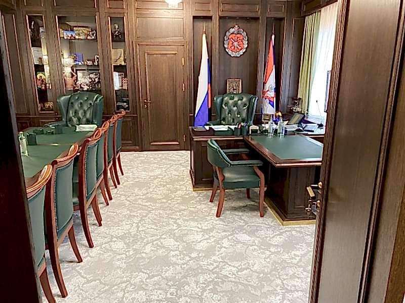 Оформление пола в Pin-Up кабинете ковровым покрытием с фактурным дизайном. Ворс покрытия 33 класса износостойкости, рассчитан на интенсивное использование. Покрытие зафиксировано к полу на двусторонний скотч усиленной фиксации. Полотно состыкованы между собой термосваркой. Настил коврового покрытия осуществлялся с точной подрезкой по стенам и мебели.
